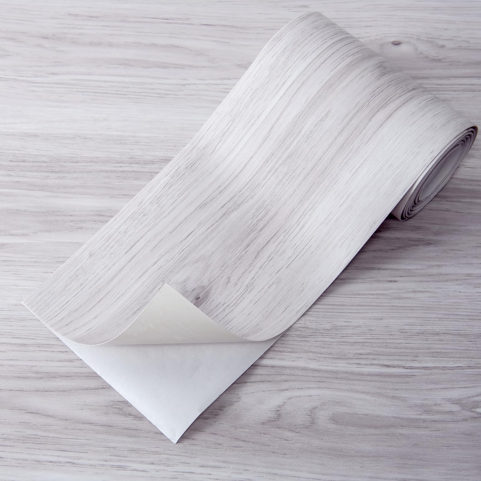Stick Floor Tiles, 10Pcs Luxury Vinyl Plank Flooring Wood Look, 36" × 6" Adhesive and Waterproof Tile Sticker for Bedroom, Living Room, Kitchen, White/Grey