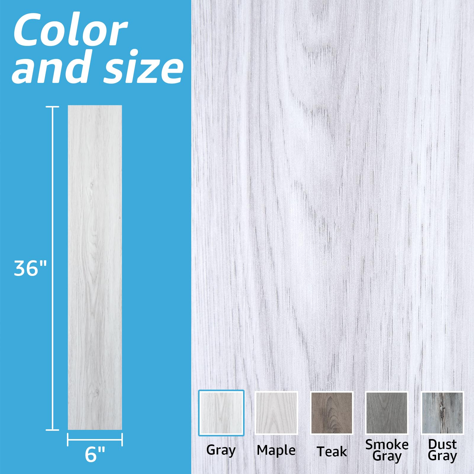 - 📌 Size: Self adhesive floor tiles the size of each piece is 36 x 6 inch. 10 pieces can cover 15 sq.ft.