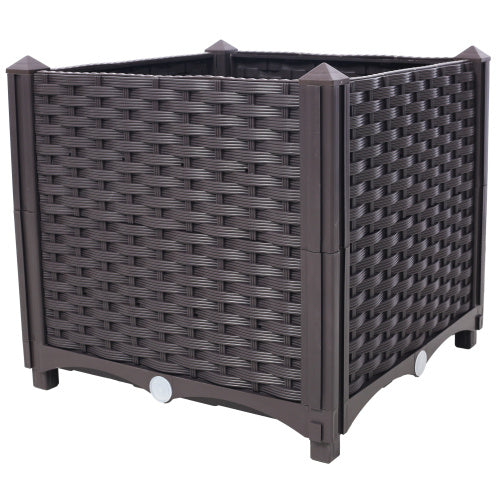 Deep Self-Watering Raised Garden Bed Planter Box (14.7" H) for Vegetables, Flowers, and Herbs | Brown Polypropylene