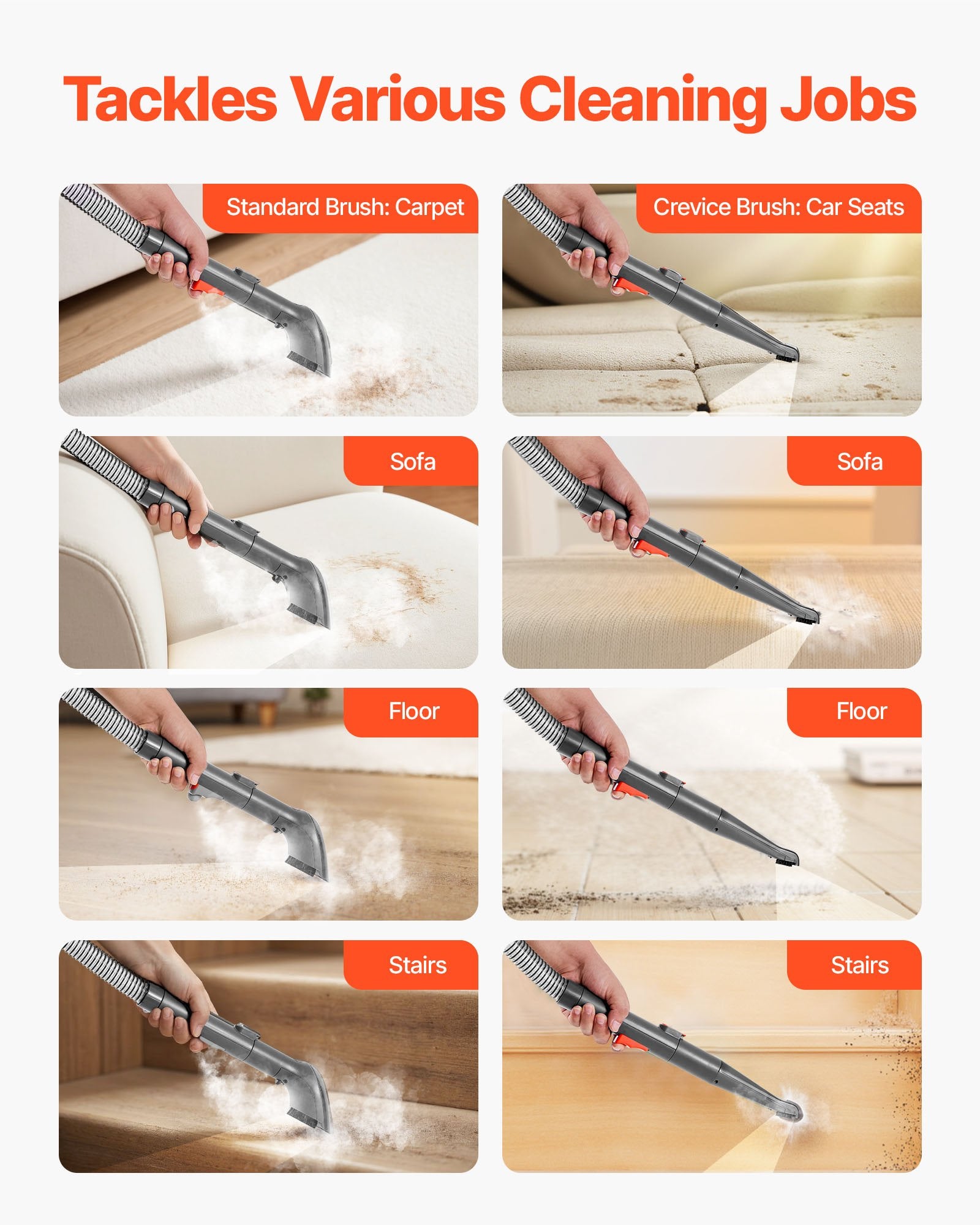 Portable Carpet Cleaner Machine Dual-Water Tank 11.5Kpa Upholstery Cleaner